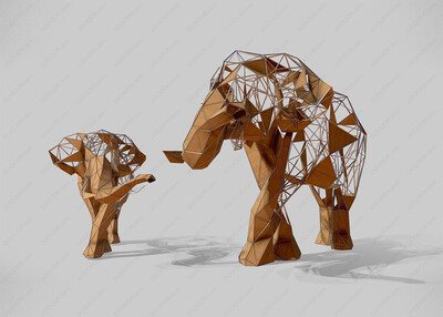 抽象艺术大象雕塑线面体3D模型FBX&BLEND素材