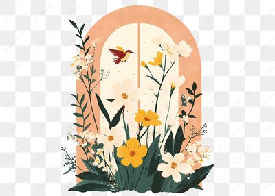 花园窗户插图
