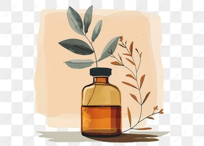 药瓶与植物叶子