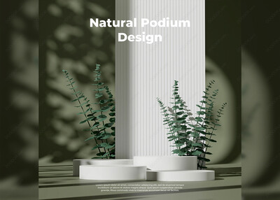 白色背景树叶点缀岩石底座PSD展示台模型-03