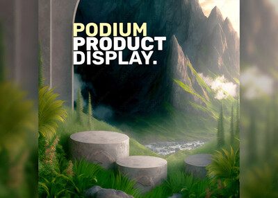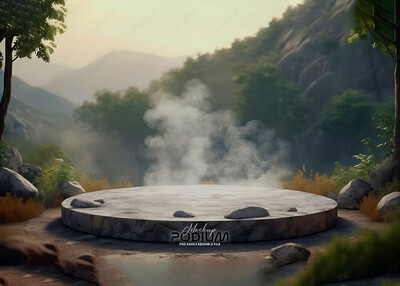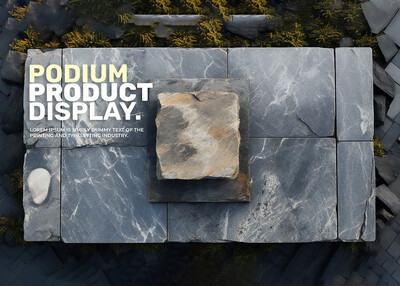 群山背景绿植点缀岩石PSD产品展示台模型-02