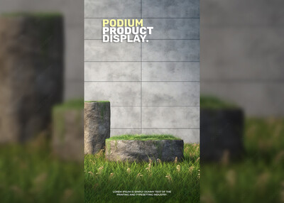 群山背景绿植点缀岩石PSD产品展示台模型-01