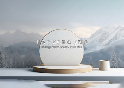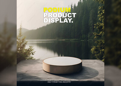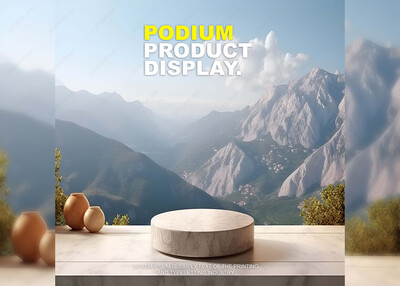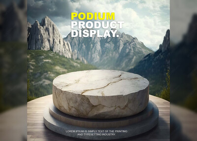 群山背景绿植点缀岩石PSD产品展示台模型-04