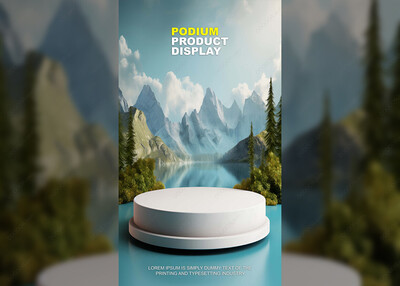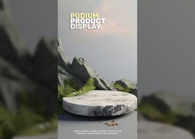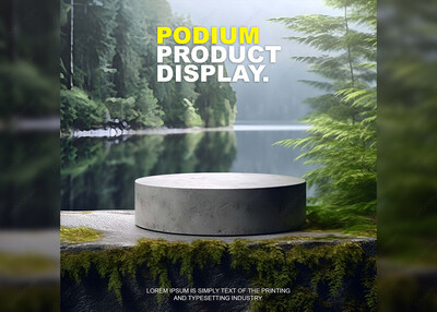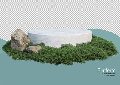 群山背景绿植点缀岩石PSD产品展示台模型-09