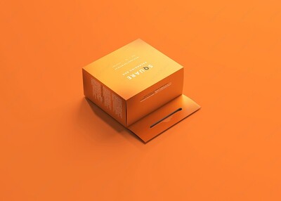橙色挂壁式方形产品包装盒样机PSD模型-06