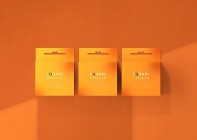 橙色挂壁式方形产品包装盒样机PSD模型-05