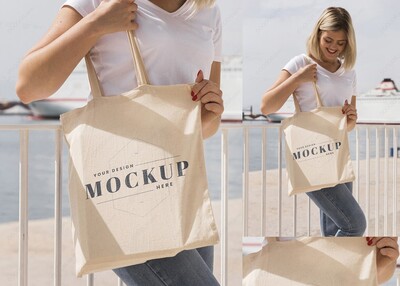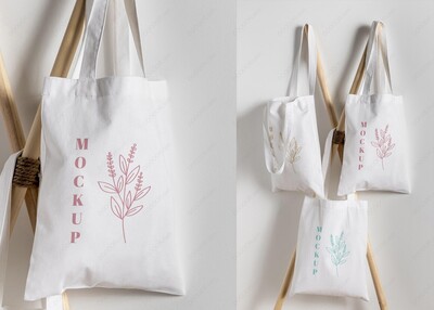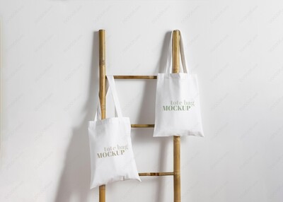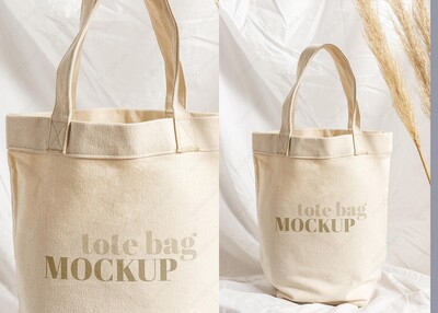 卡其色棉麻手提袋布袋样机PSD模型-1