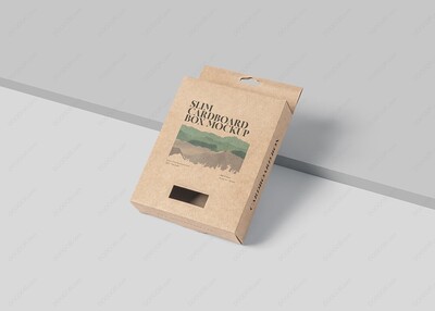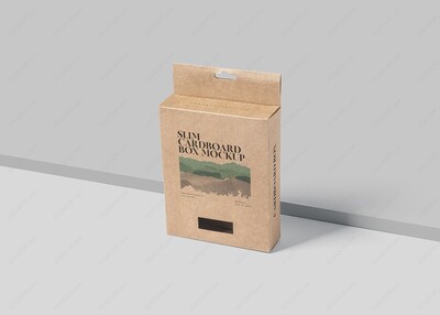 扁长方体挂式纸包装盒样机高精PSD模板素材-01