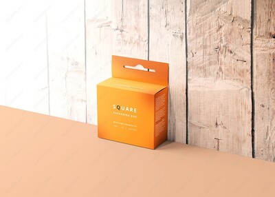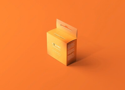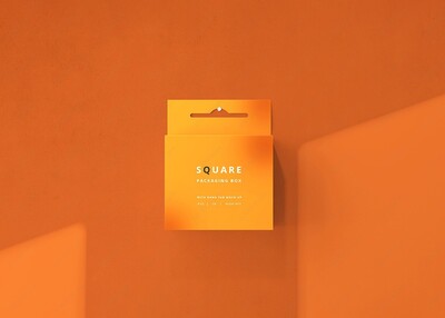 橙色挂壁式方形产品包装盒样机PSD模型-01