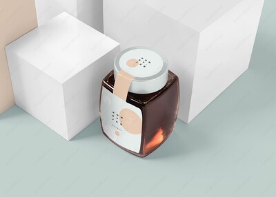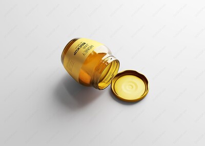 琥珀色圆肚蜂蜜包装玻璃罐样机-05