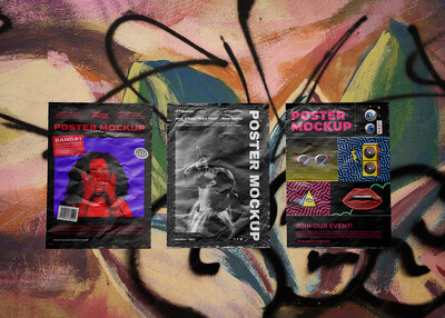 褶皱感朋克风PSD海报模板-01