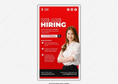 红色蓝色我们正在招聘海报竖版页面PSD模板