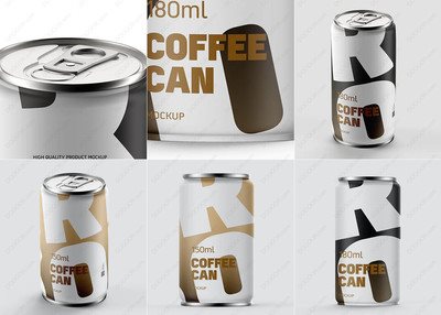 4视角咖啡罐150ML哑光45度PSD模板素材