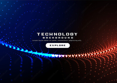 彩色发光粒子流波状红色蓝色科技矢量科技背景素材-2