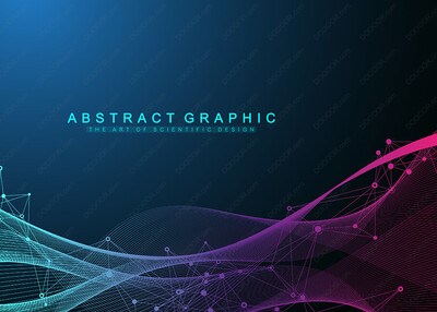 彩色曲线点阵粒子流深色大数据矢量EPS背景素材-1