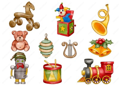 鼓风车等多种卡通儿童玩具矢量素材