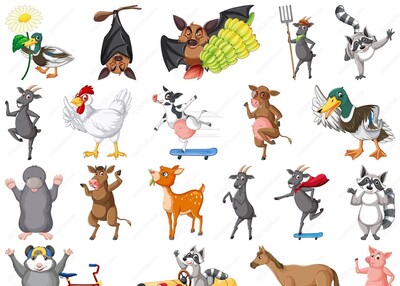 山羊奶牛等多种动物卡通形象矢量素材