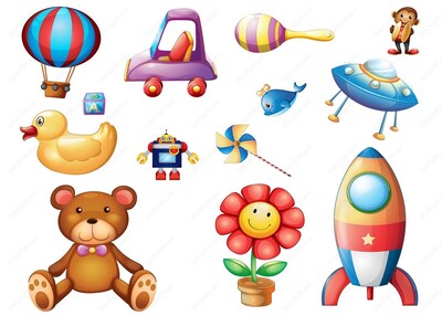 帆船飞机等九种不同的玩具矢量素材