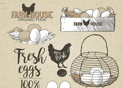 鸡蛋复古法国乡村铁丝笼矢量插画素材