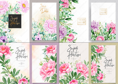 4款精美温馨鲜花手绘爱情婚礼矢量A4竖版双面海报素材-VOL-04