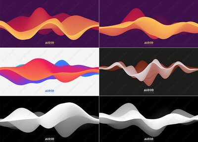 8款声波可视化彩色实心波浪形矢量曲线背景&超清素材[6000PX]
