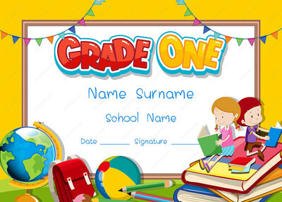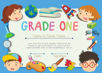 一年级证书插图矢量模板素材