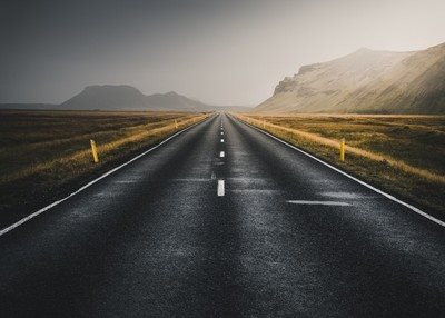 笔直的公路阴沉的天空一路向前两侧的天地荒芜黄色