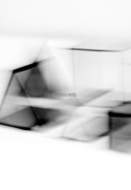 虚拟艺术设计模糊的黑白立体图形坐落在空间中