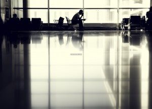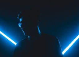 特写一个戴着眼镜男士行走在蓝黑色的的灯光下人物素材设计