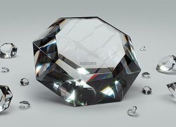 钻石晶莹剔透散落在桌面上反射出五彩斑斓的光芒