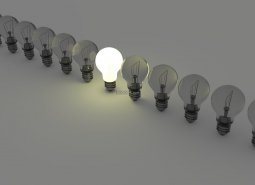 传统白炽灯与新型能源节约型LED灯比照在一起向人们昭示要节约能源