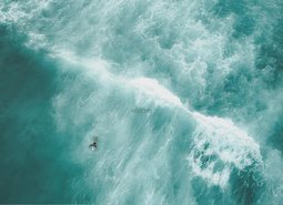 一个极限运动爱好者在波涛汹涌的海面上冲浪享受着极限的快感