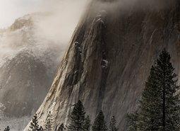 冬日清晨薄雾弥漫整个空间陡峭的山峰高耸入云