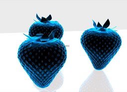 电脑设计干净整洁的桌面上有几枚蓝色的草莓食物饮品素材设计