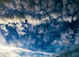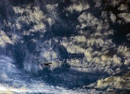 天空中飘着一片片白云一只雄鹰在空中翱翔