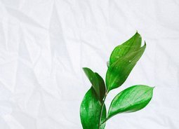一个白色透明的玻璃杯中放着一株绿色清脆的植物自然清新植物素材设计
