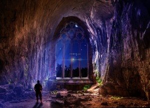 幻想世界月光透过栅栏直射在建筑物里探险者在月光下沉思
