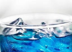 食物饮品素材设计晶莹剔透的玻璃杯子里面装着一杯蓝色的饮品清凉冰爽