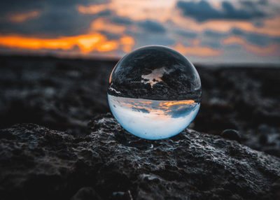 自然风景素材设计傍晚时分透过透明的水天边美景晶球看到倒映出来的