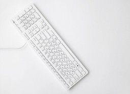 整洁的白色桌面上放置着一个笔记本电脑和一个医用听听诊器医学健康素材设计