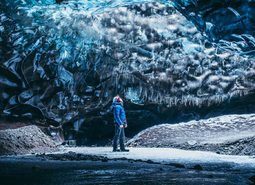 一个人站在地面生欣赏着童话般的美丽景色