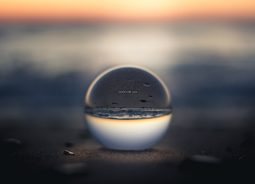 透过一个透明的水晶球看到远处海天相处的美丽景色自然风景素材设计