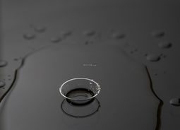 黑色的桌面上放置着一个透明的茶杯周围撒着一滩水食物饮品素材设计