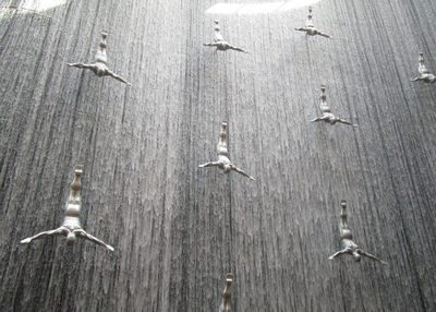 不同姿势的跳水运动员玩偶从高空落下身边的水流像瀑布一样体育运动素材设计