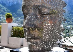 艺术人物肖像摆件后面是青翠的山峰