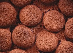 美味零食马卡龙上面铺着一层薄薄的褐色咖啡豆食物饮品素材设计