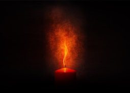 红色的蜡烛火焰在空中舞动点亮了黑暗背景花纹素材