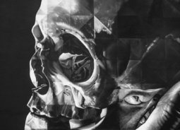 黑白风格几个人靠在一个持着头骨的手上