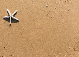 高清拍摄黄色的沙滩上有一只白色的海星动物素材设计