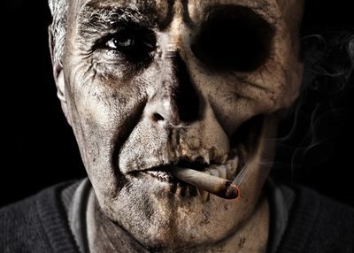 一个常年吸烟的老人枯瘦如柴面部脱相牙齿腐蚀唤醒人们认清烟草的危害